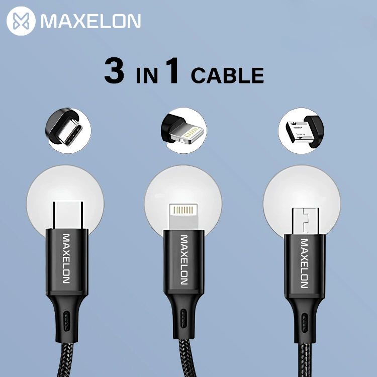 Maxelon Nova 3 in 1 Charging Cable Metal Pin